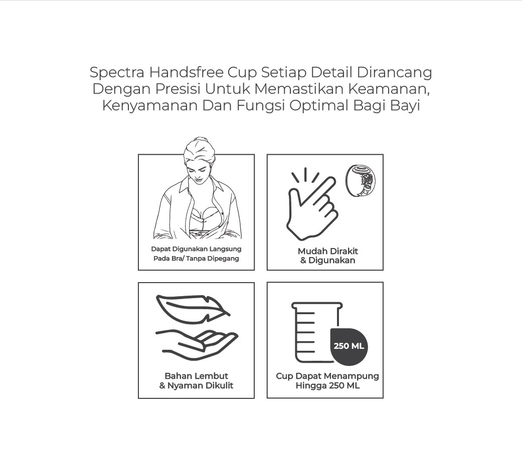 SPECTRA Handsfree Cup didesain untuk memberikan melengkapi kebutuhan ibu menyusui.